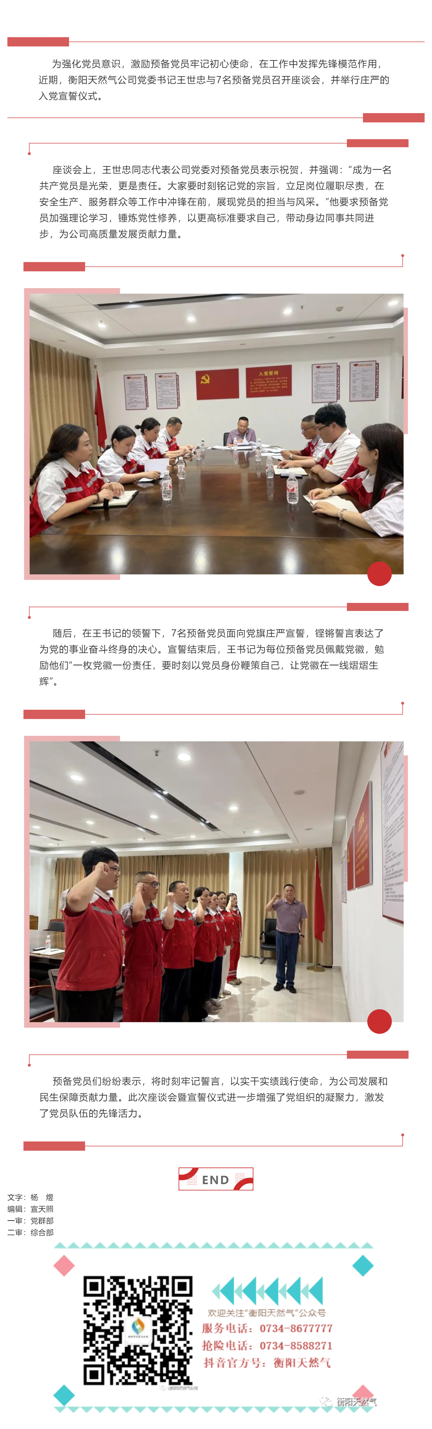 衡陽天然氣公司黨委召開預(yù)備黨員座談會暨入黨宣誓儀式